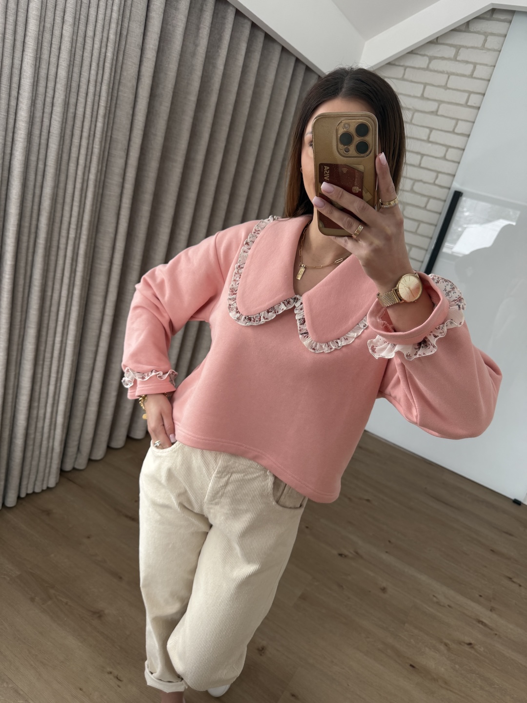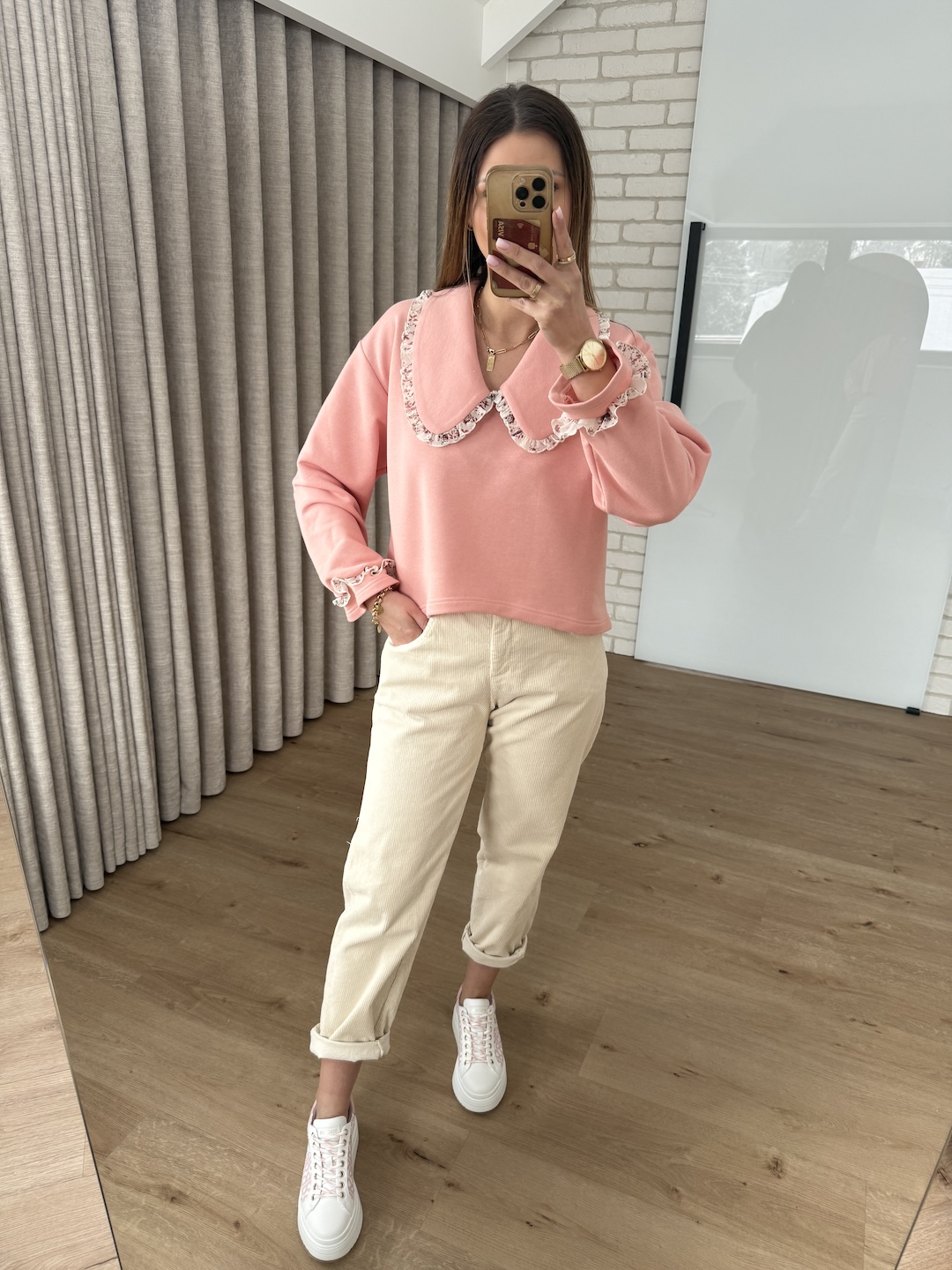 Bawełniana bluza z kołnierzem - brzoskwiniowa