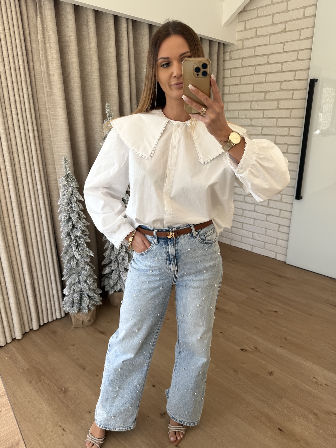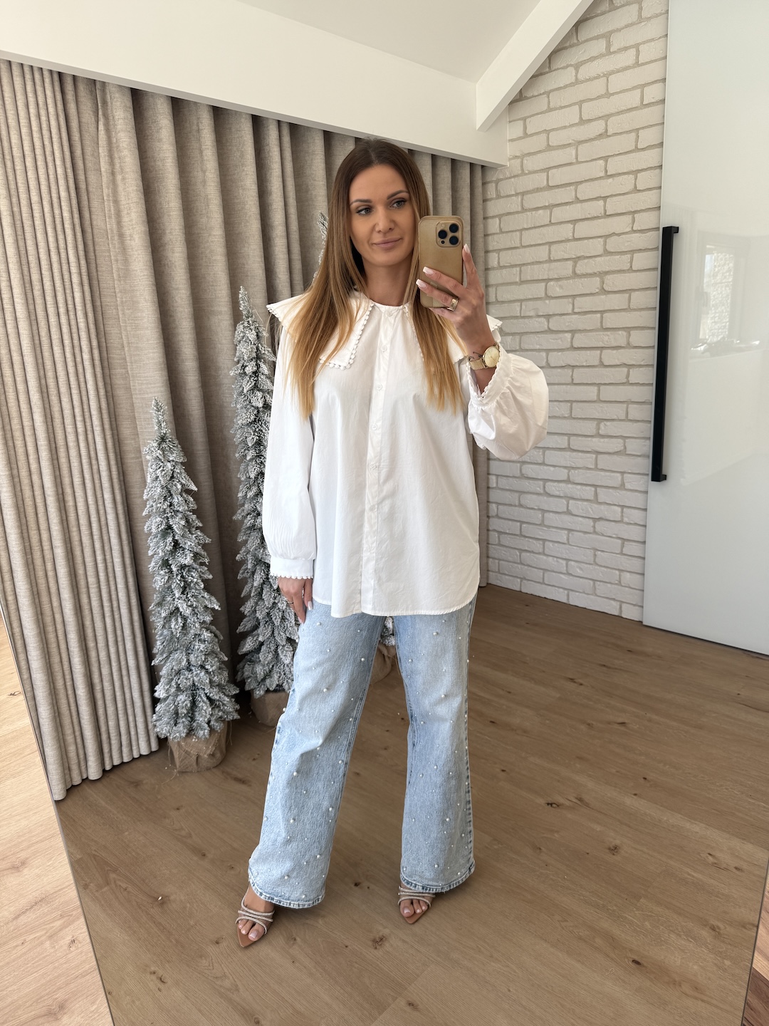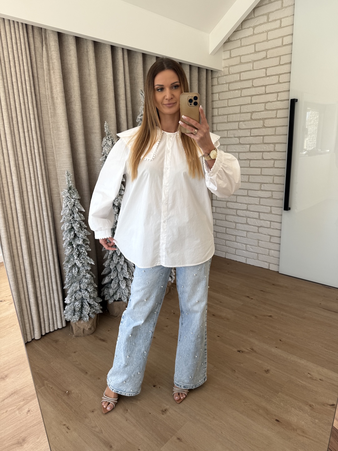 Bawełniana koszula z obszernym kołnierzem - biała