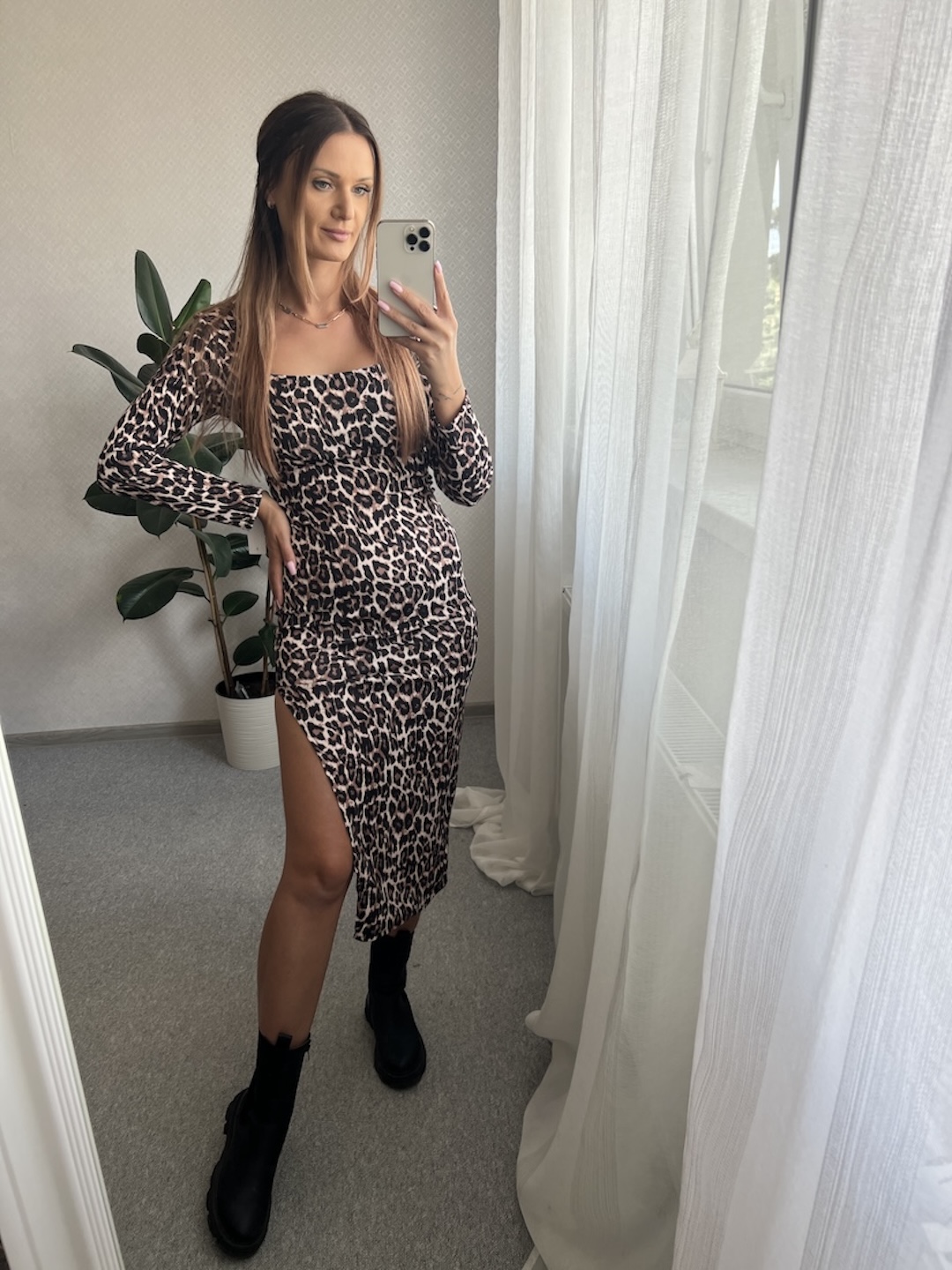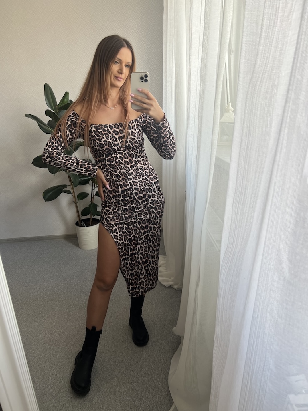 Dopasowana sukienka PEA - pantera bez pleców