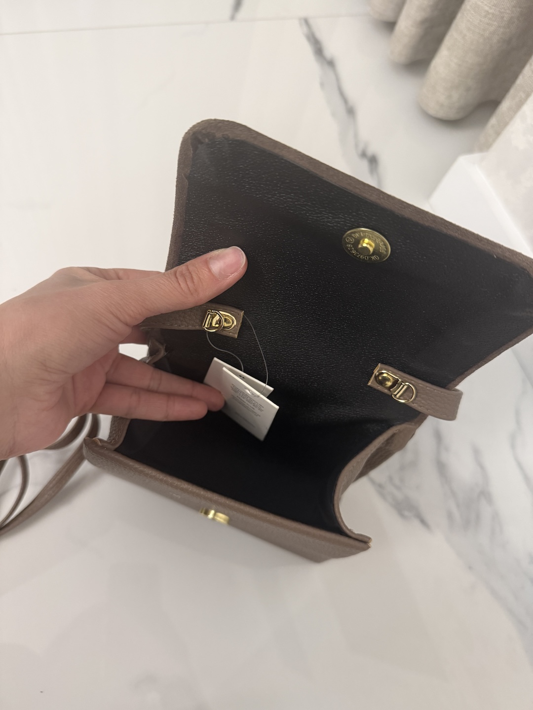 Wnętrze torebki jest kompaktowe, ale praktyczne – pomieści niezbędne drobiazgi, takie jak telefon, portfel i klucze. Idealna dla kobiet ceniących połączenie klasyki, jakości i nowoczesnej prostoty.