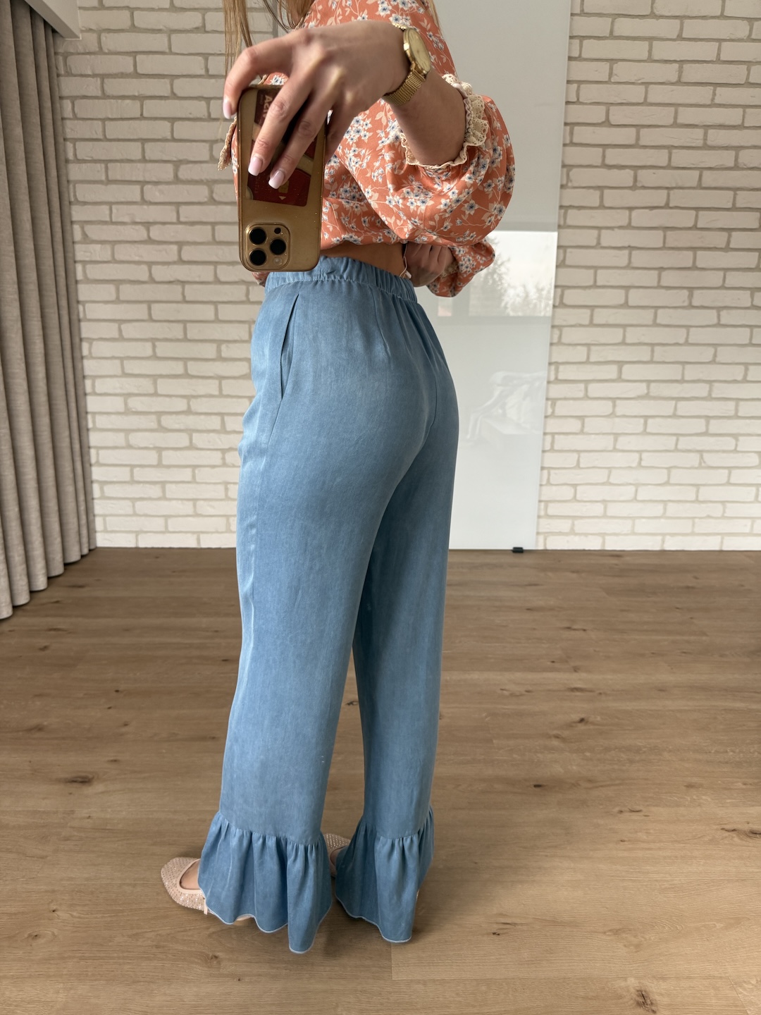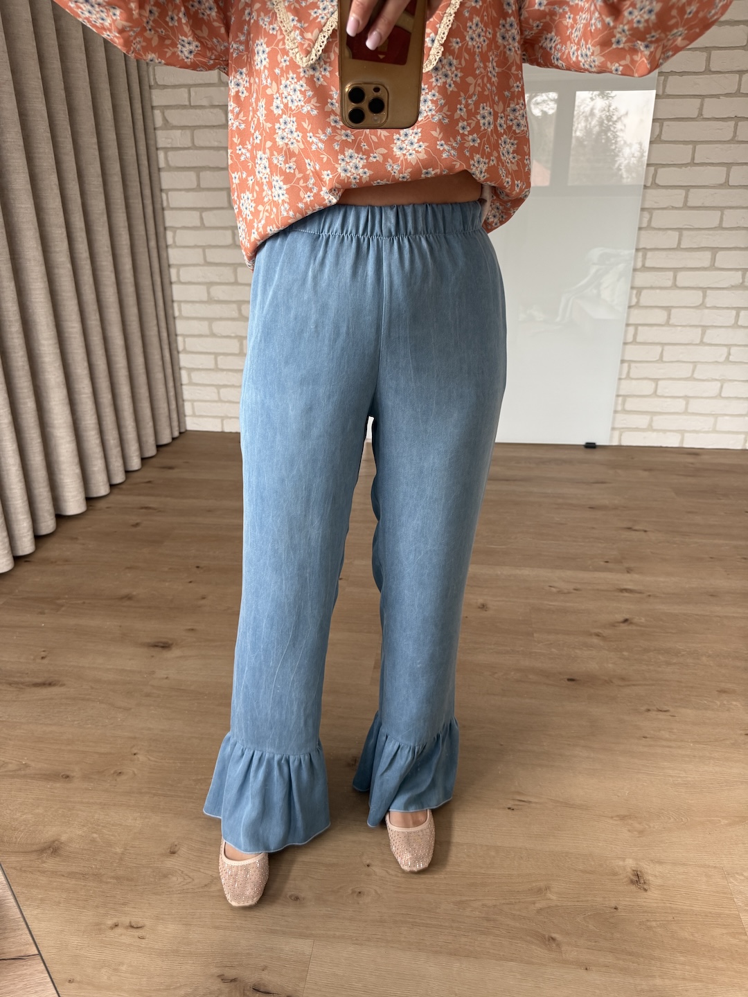 Spodnie z falbanką 100% tencel -jasny jeans