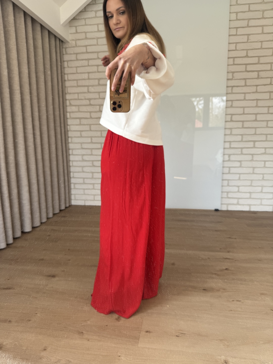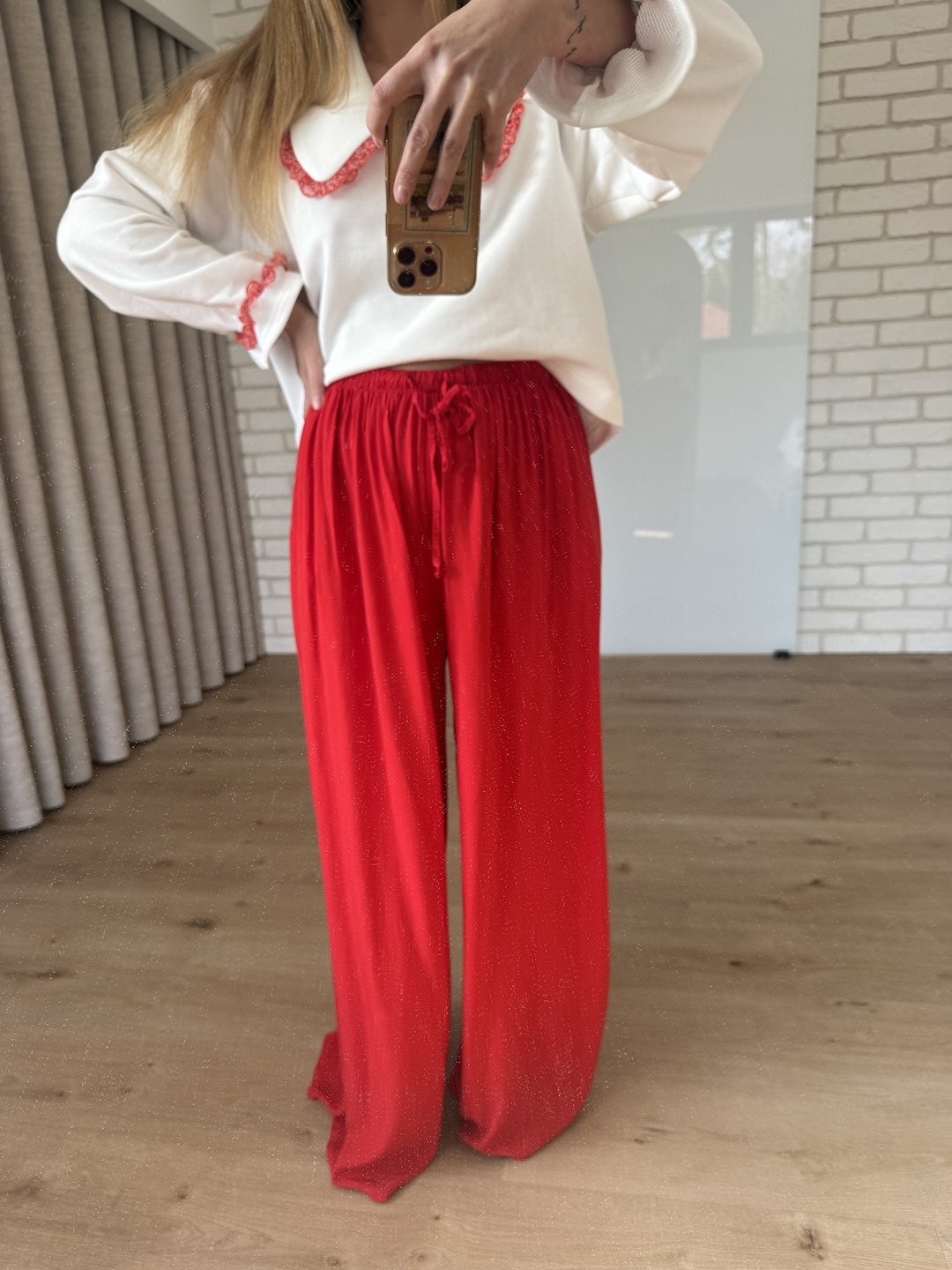 Spodnie z szeroką nogawką 100% wiskoza - czerwone