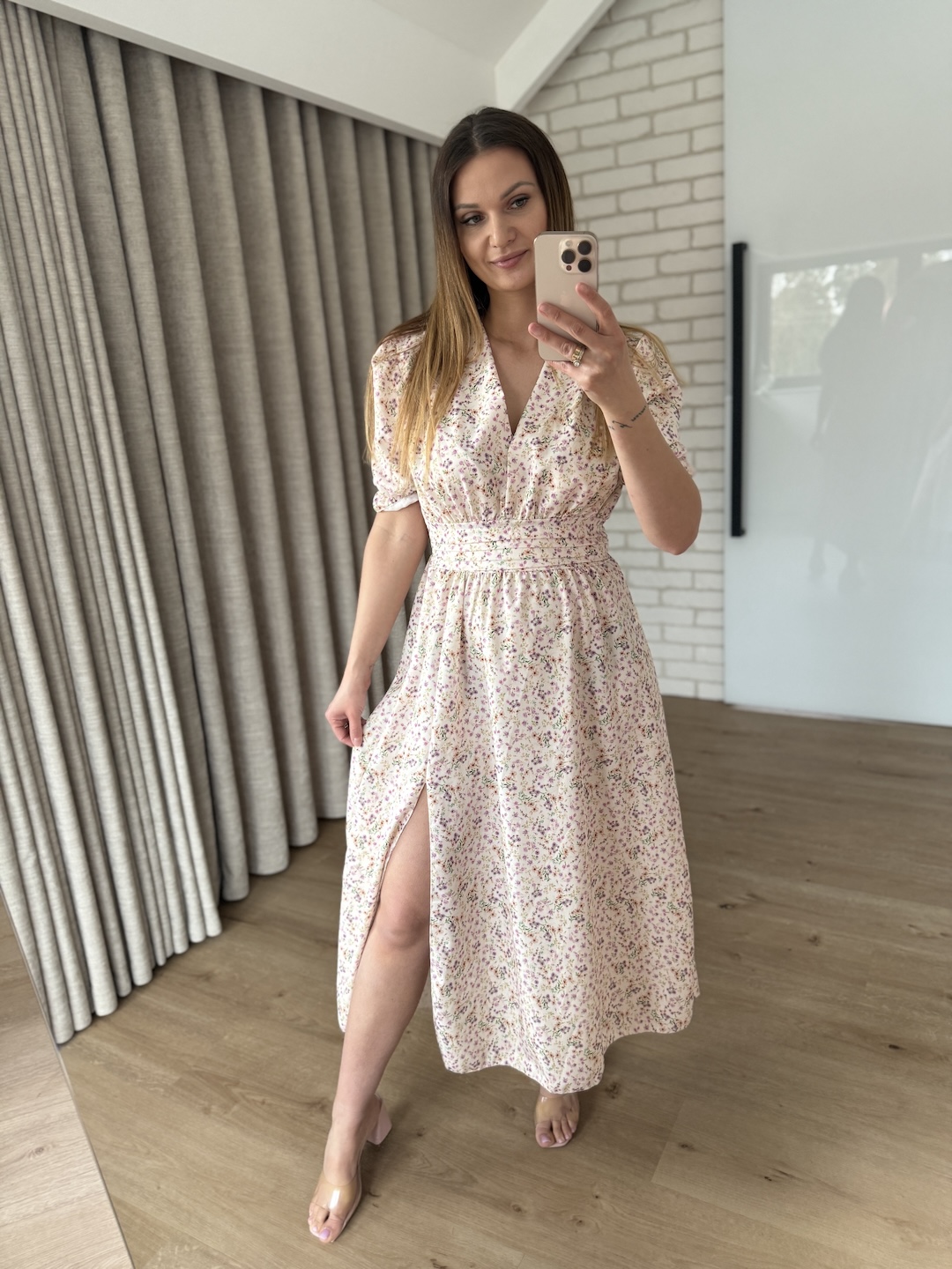 Sukienka ARIZONA - biała baza w czerwone kwiatuszki