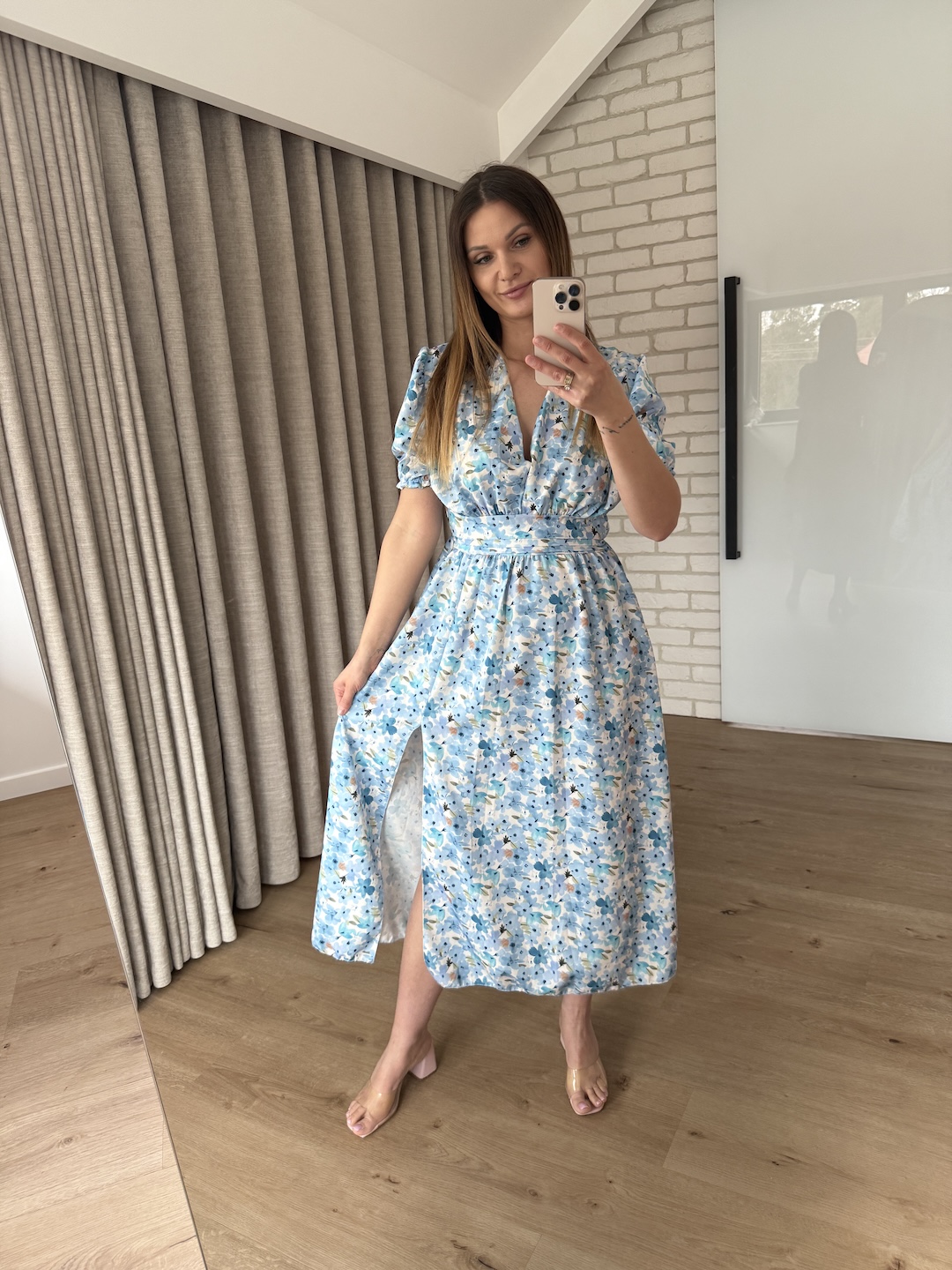 Sukienka ARIZONA - biała baza w czerwone kwiatuszki