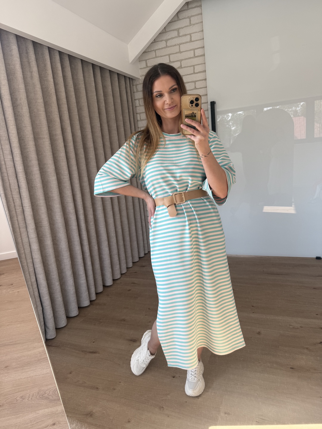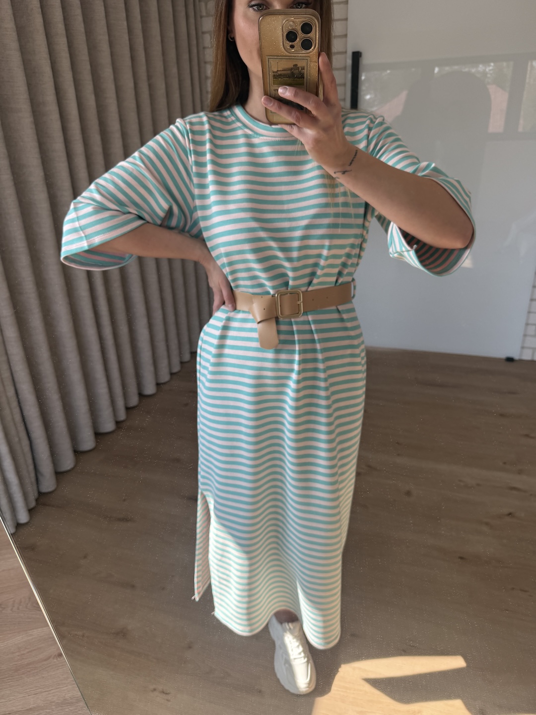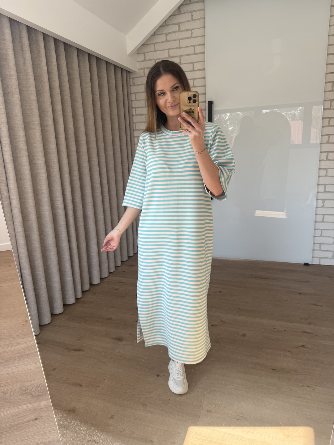 Sukienka bawełniana o prostym kroju w paski - turkus