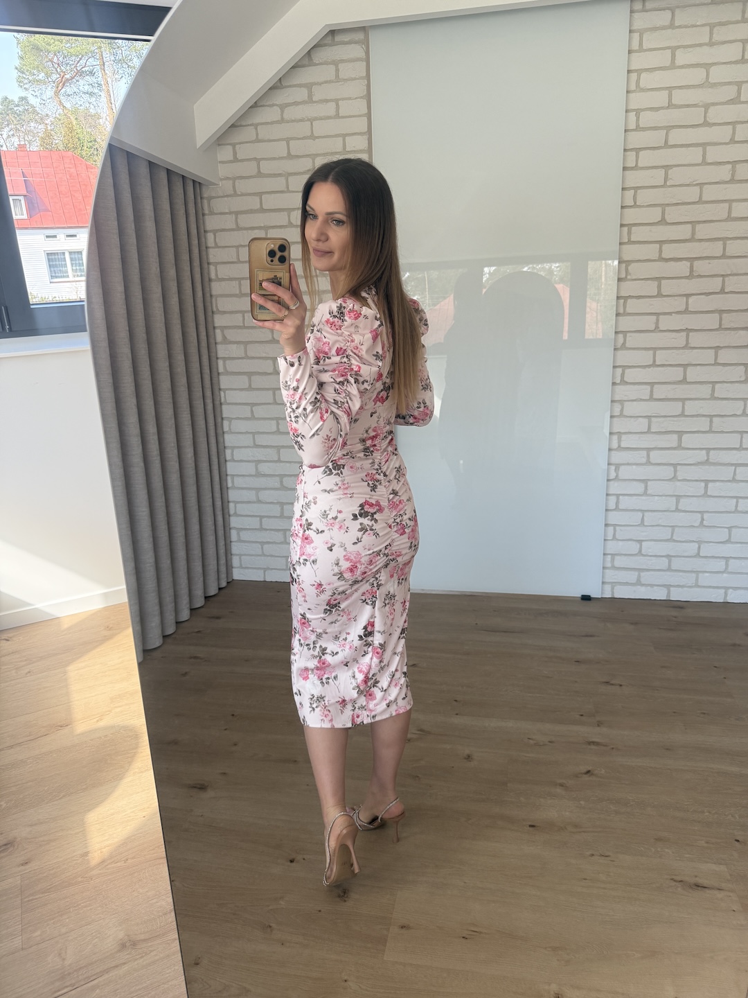 Sukienka dopasowana NORA - pudrowa w różyczki
