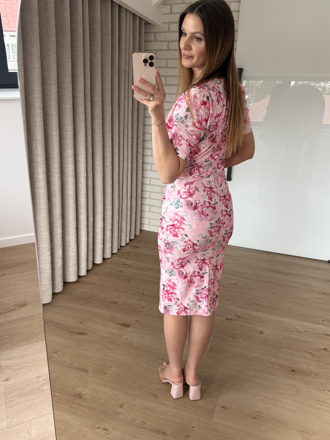 Sukienka NORA z krótkim rękawkiem - różowa