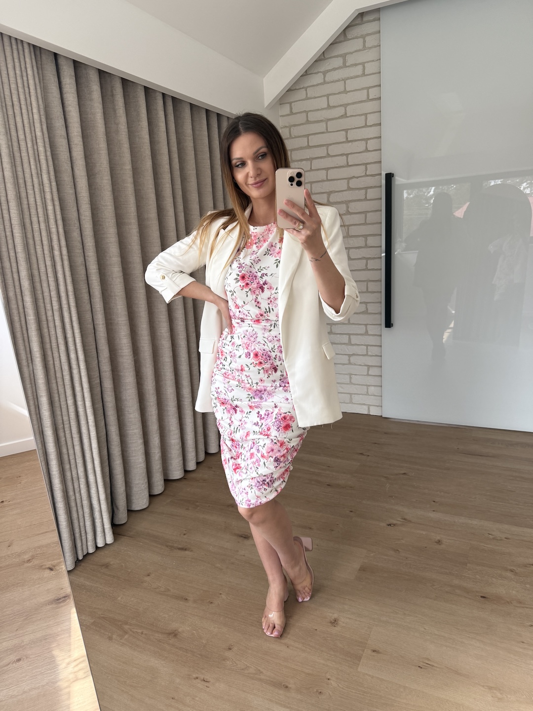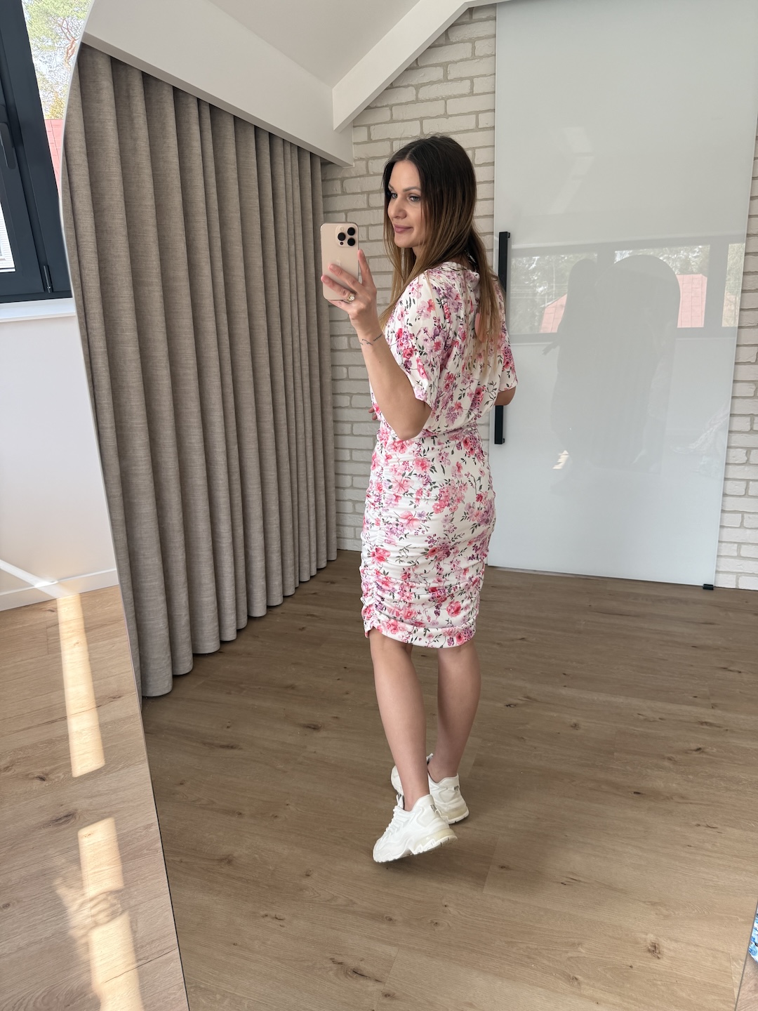 Sukienka PONNY z krótkim rękawkiem - biała w różowe kwiaty