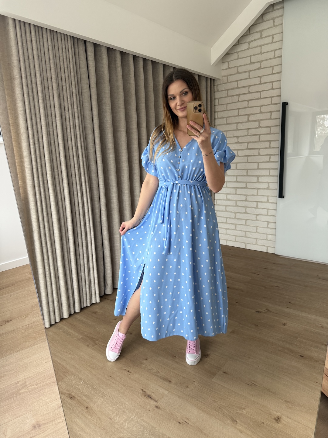 Sukienka w groszki SONA - niebieska