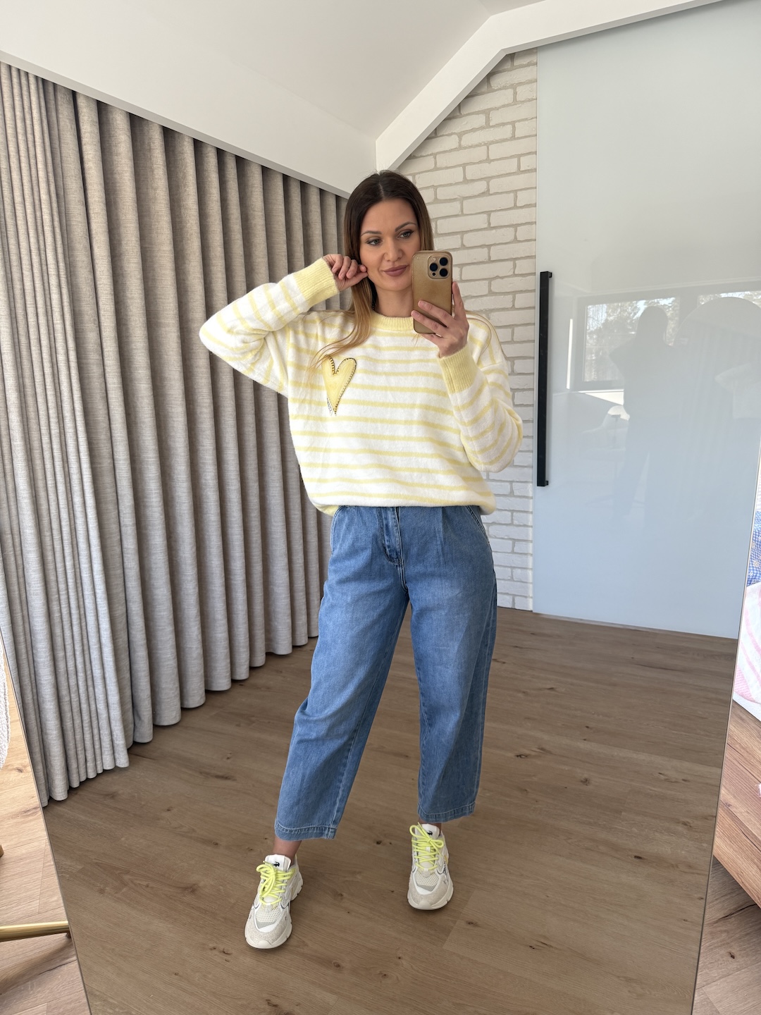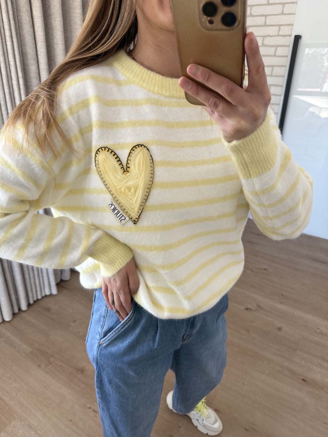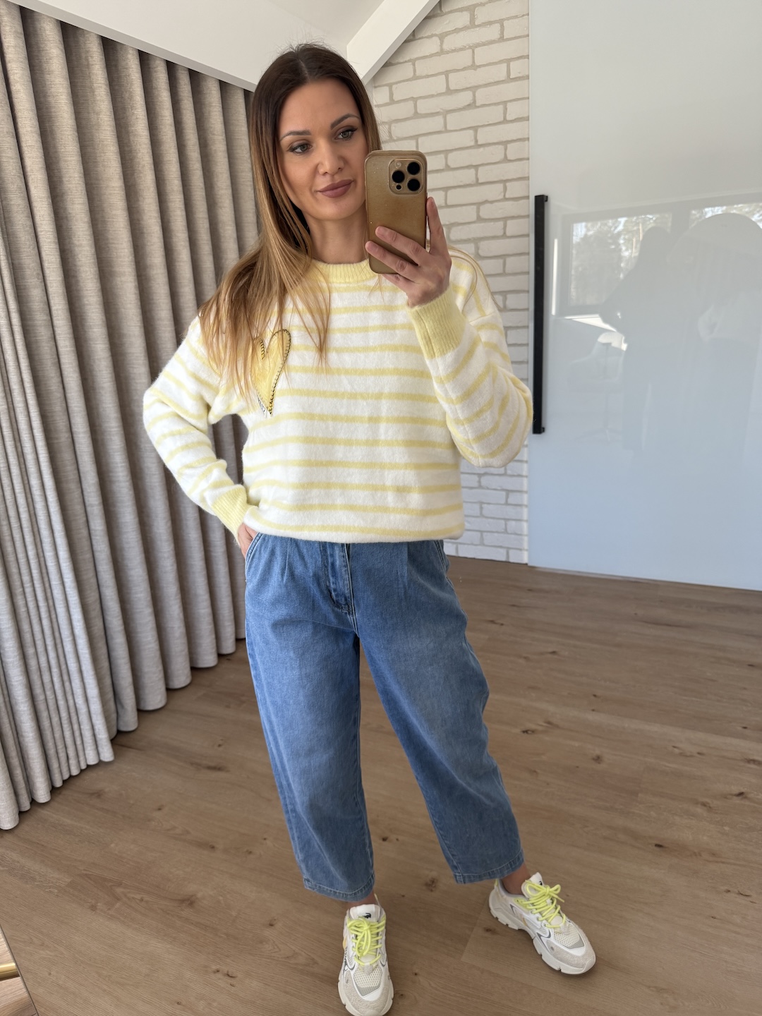Sweter w paski z serduszkiem - żółty ( wiskoza )